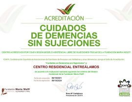EntreÁlamos renueva su acreditación en “Cuidados de demencias sin sujeciones”