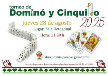 DetallesTorneo de dominó y cinquillo en Entrelamos: una oportunidad única para compartir, disfrutar y competir con alegría.