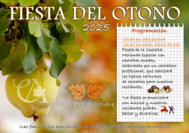 🍂 El 21 de octubre celebramos la Fiesta del Otoño, compartiendo una tarde muy especial con residentes y familiares. Disfrutamos juntos de unas ricas castañas asadas y del ambiente acogedor que trae esta época del año🍂