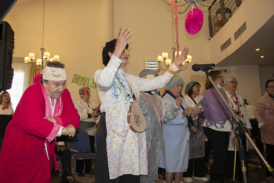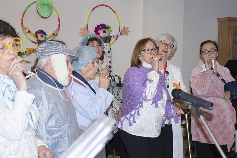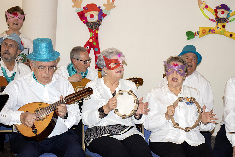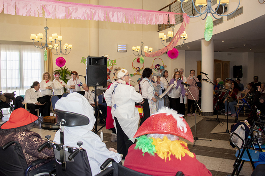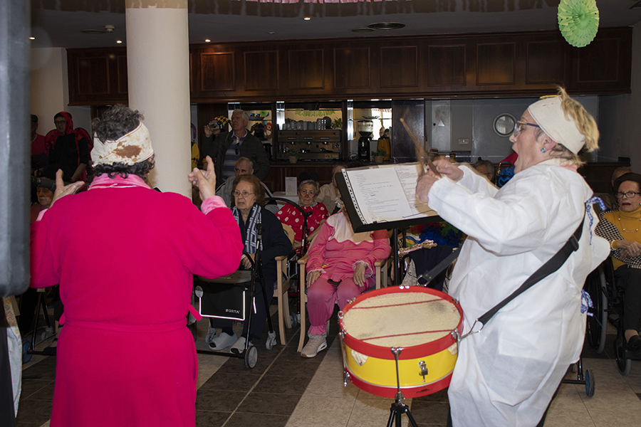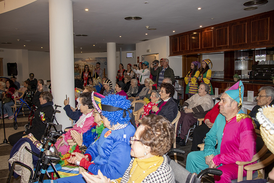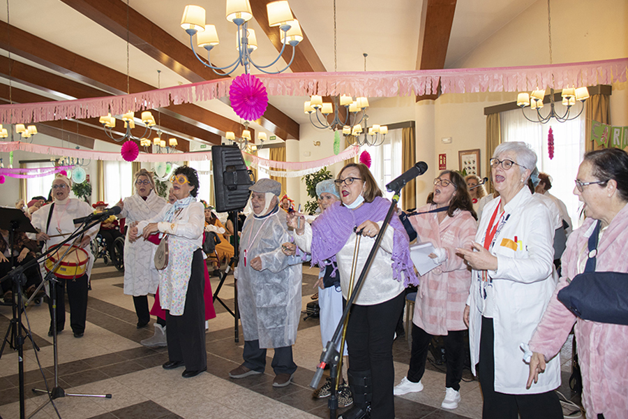 Ataviadas como pacientes de la sanidad pública, y fieles al espíritu crítico y satírico del Carnaval, no faltaron las letras atrevidas ni las referencias a la actualidad política, arrancando risas y aplausos entre nuestros residentes. Aunque el CPA de Atarfe ya nos visitó el pasado año por estas fechas, esta comparsa dirigida por Fran era la primera vez que actuaba en Entrealamos… y sin duda dejó el listón muy alto.