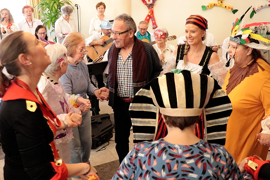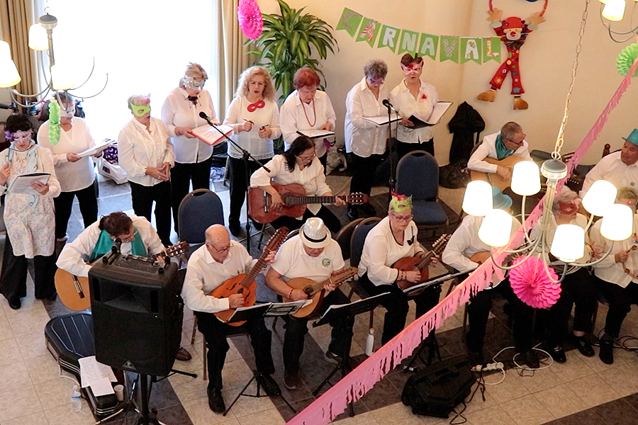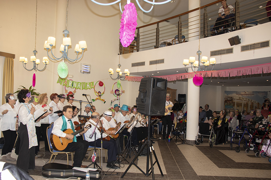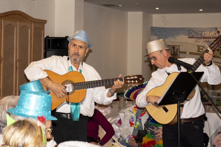 Interpretaron un repertorio variado y muy acertado, con temas de tuna, sevillanas y pasodobles que nuestros residentes corearon y bailaron sin descanso: La Tarara, Bambolero, La morena de mi copla, Las cintas de mi capa, En esta noche clara… La elección de canciones fue todo un acierto.