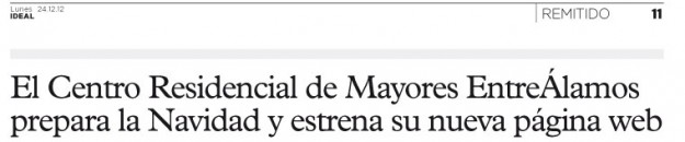 El diario Ideal de Granada en su edición del día 24 de diciembre (2012) publicó un artículo haciendo mención de las diversas actividades que se preparan en el Centro Residencial de Mayores EntreÁlamos de cara a la Navidad y resaltó el estreno de nuestra nueva web.