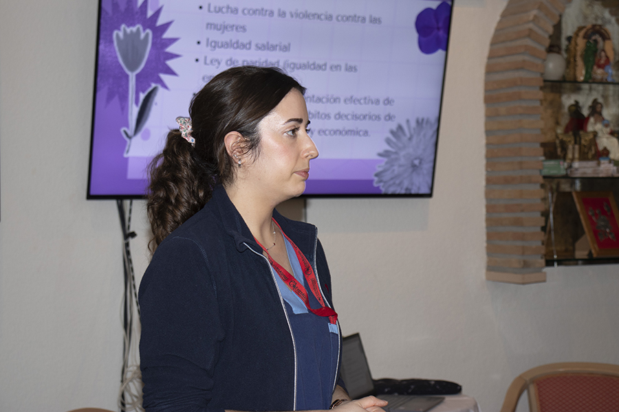 La actividad comenzó con una charla sobre la evolución del papel de la mujer a lo largo del tiempo, apoyada por una presentación preparada por el equipo de Terapia. A través de imágenes y comentarios, se fue recorriendo cómo han cambiado las oportunidades, los derechos y las experiencias de las mujeres a lo largo de las décadas.