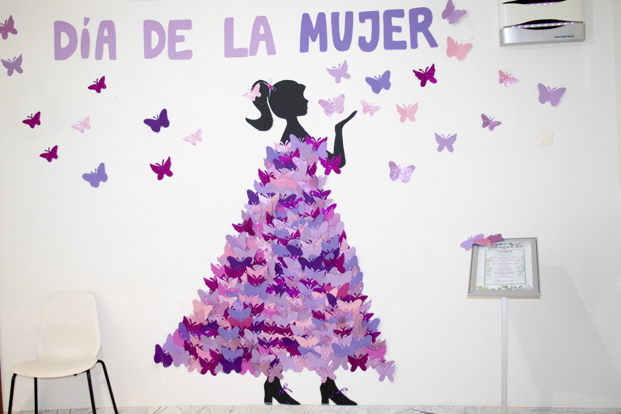 Para completar la celebración, en la recepción del centro se ha colocado un precioso mural conmemorativo del Día de la Mujer, preparado con mucho cariño por el equipo de Terapia. Ha gustado tanto a residentes y visitantes que varios de ellos han pedido que permanezca expuesto durante más tiempo.
