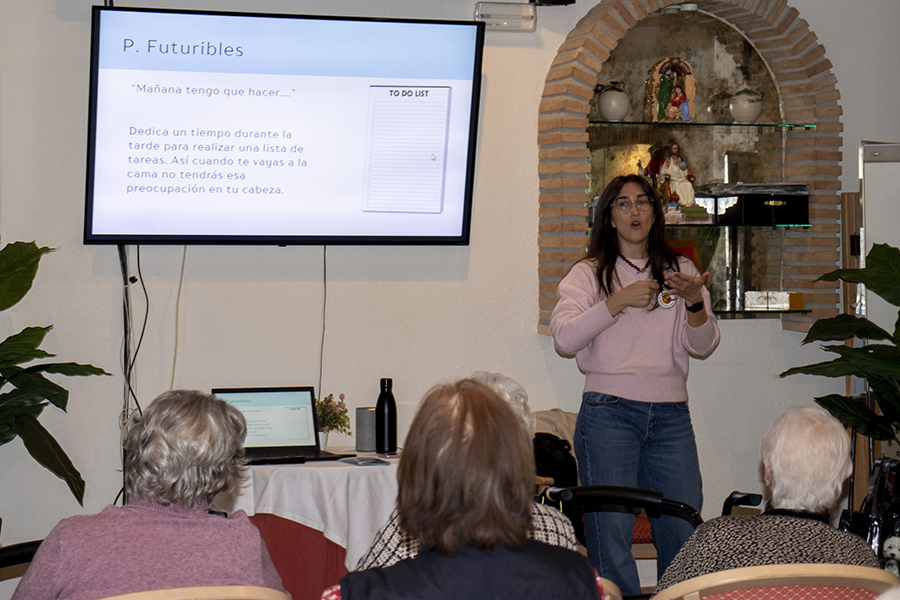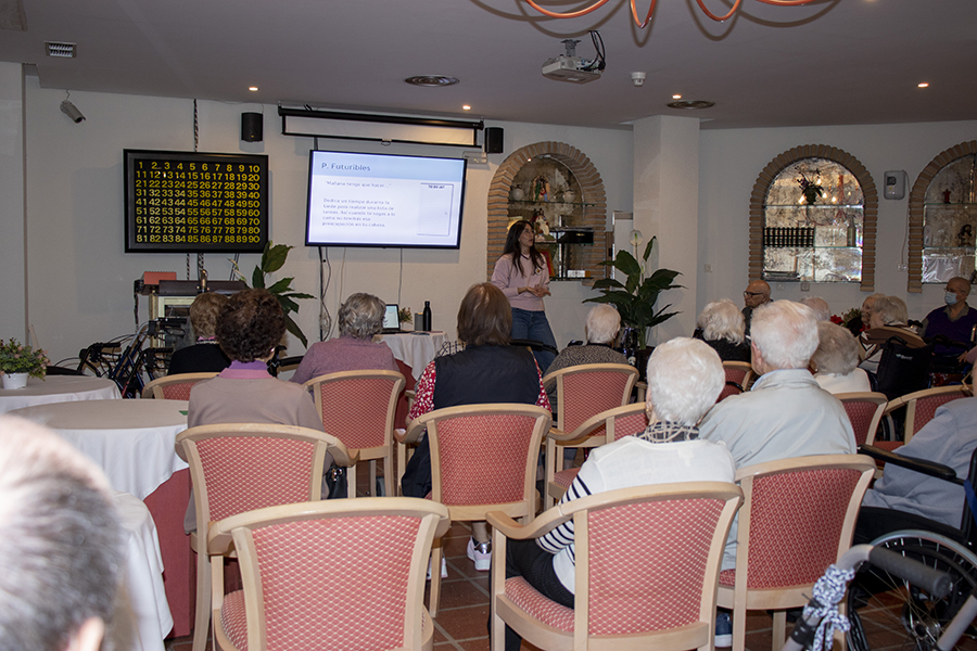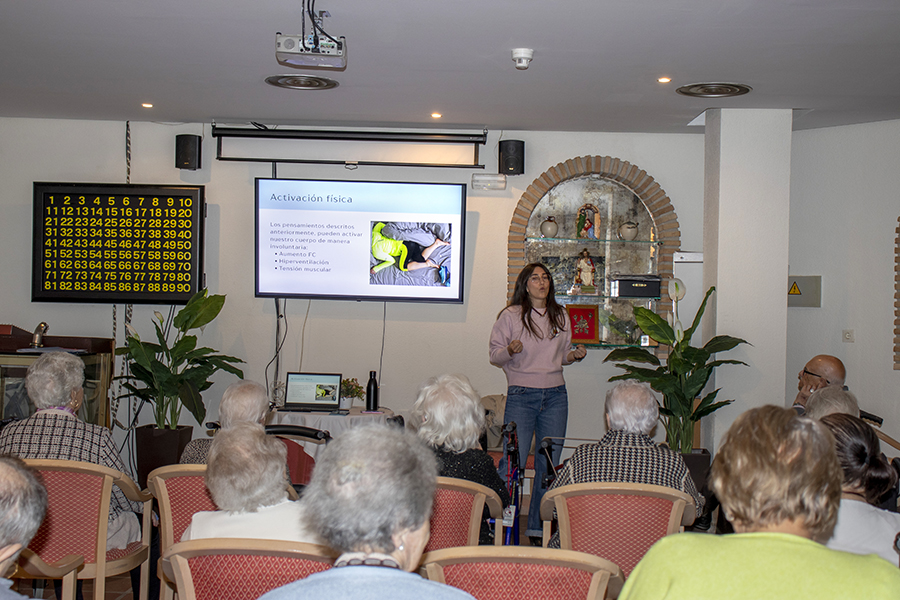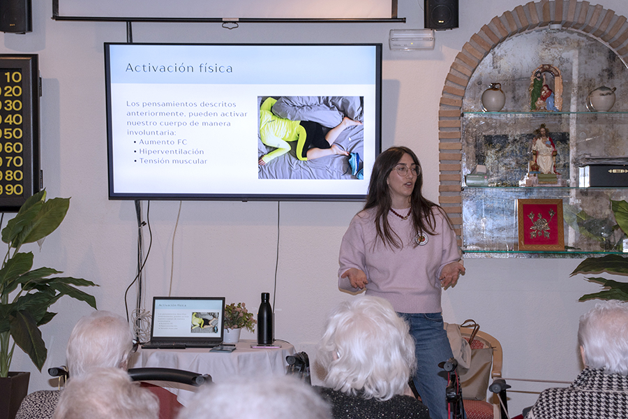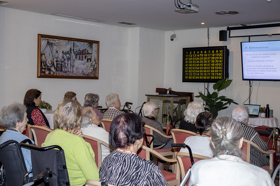 Durante la sesión, varios residentes comentaron la dificultad de conciliar el sueño cuando hay exceso de pensamientos. Como recurso, se propuso el ejercicio de contar hacia atrás, una variante del clásico método de contar ovejas, que ayuda a centrar la atención y facilitar el descanso.