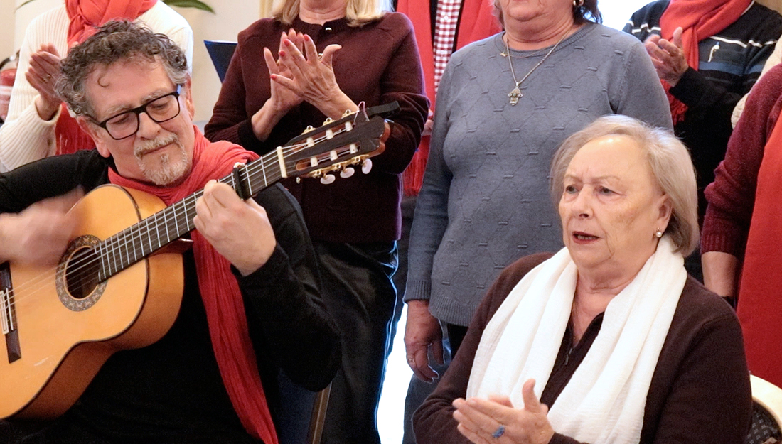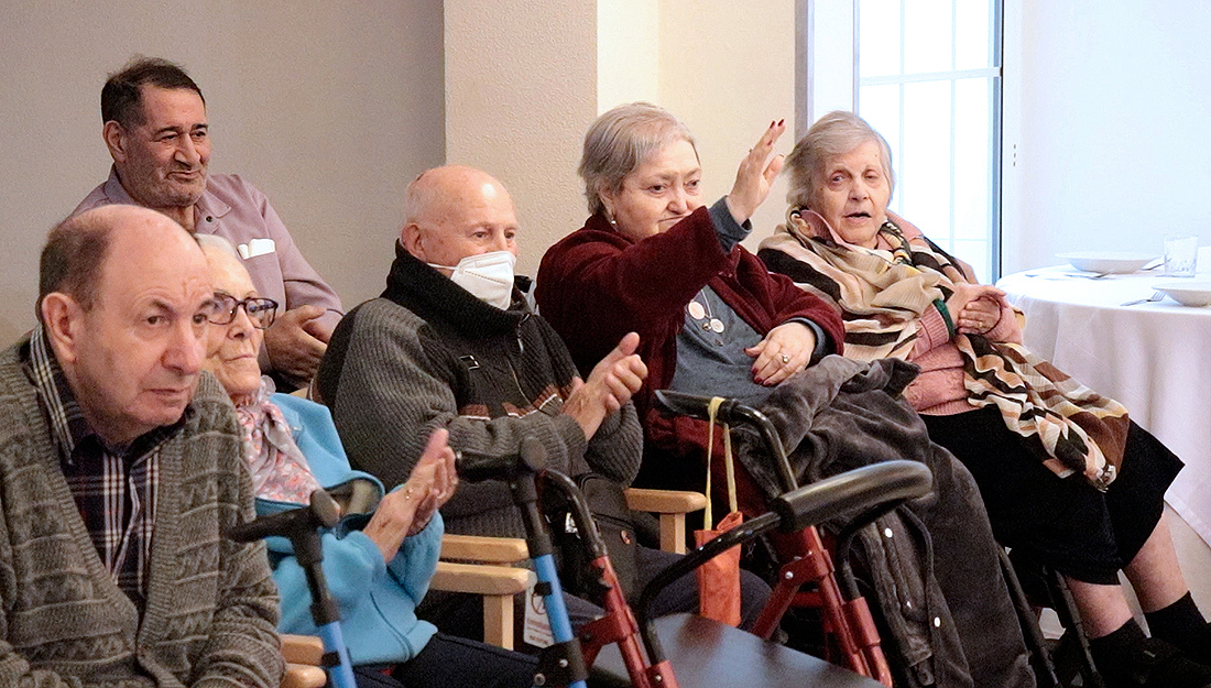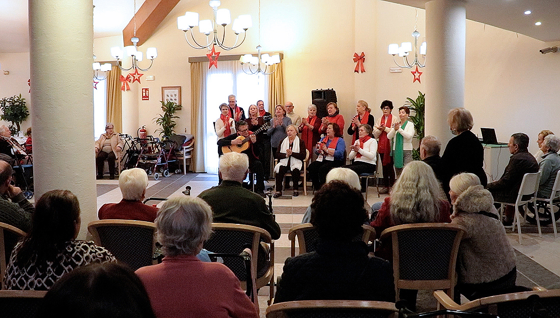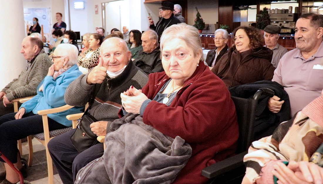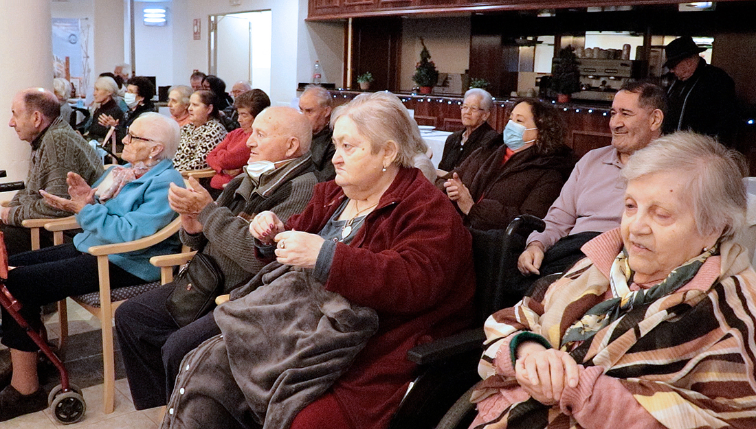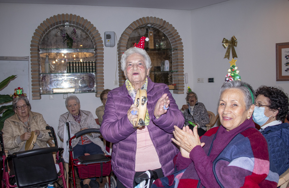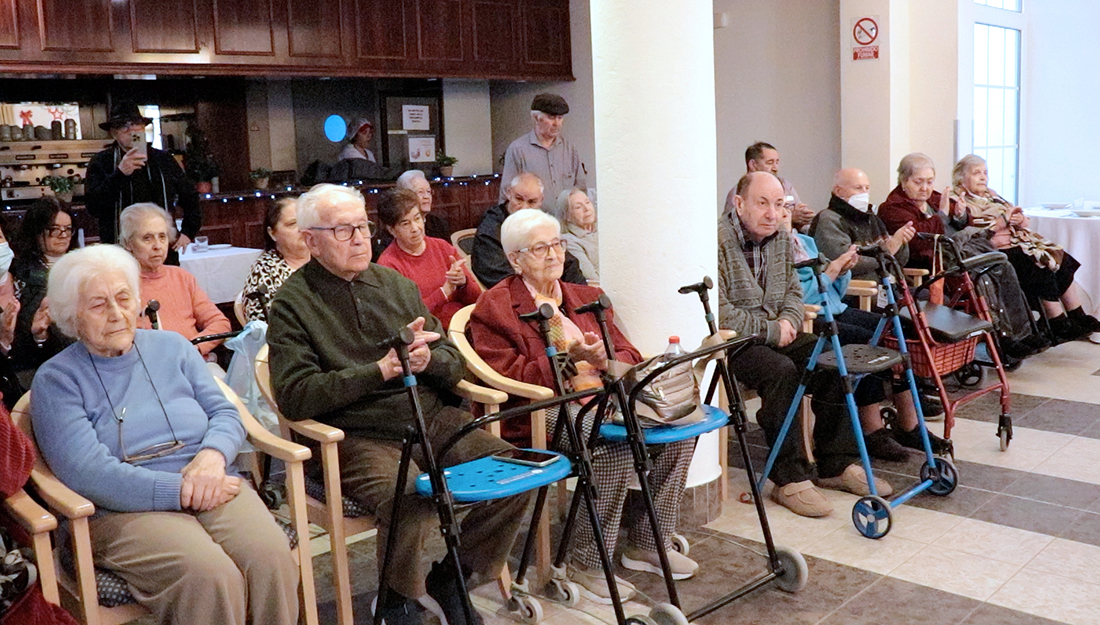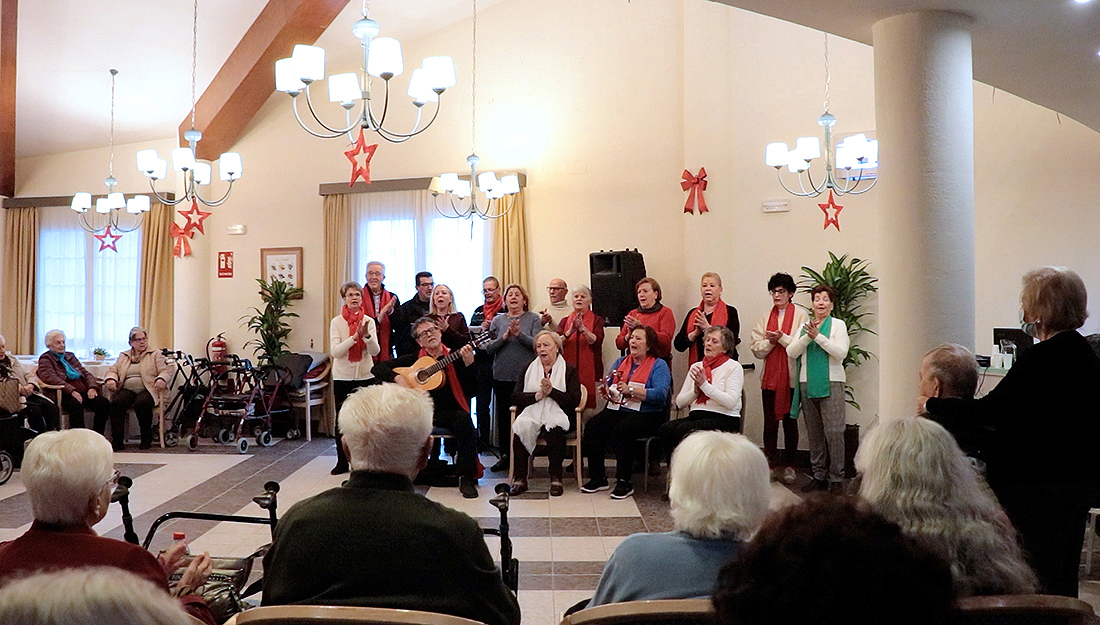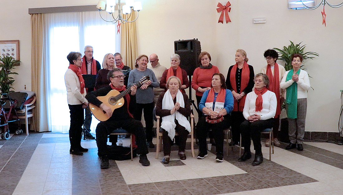 Con una fuerza y una energía que se hicieron notar en toda la residencia, interpretaron villancicos y temas rocieros que animaron tanto a residentes como a familiares y personal que nos acompañaron esa tarde. Sus canciones invitaron a participar, a seguir el ritmo y a disfrutar de una actuación que fue muy bien recibida por todos.