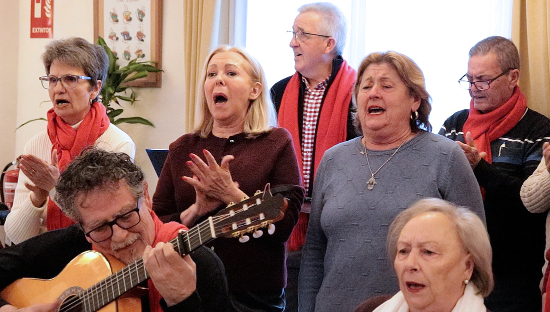 El lunes 22 de diciembre recibimos en el comedor Sierra Elvira la actuación del Coro Rociero El Buen Pastor, una visita muy esperada por nuestros residentes y muy ligada a la Navidad en nuestro centro.
