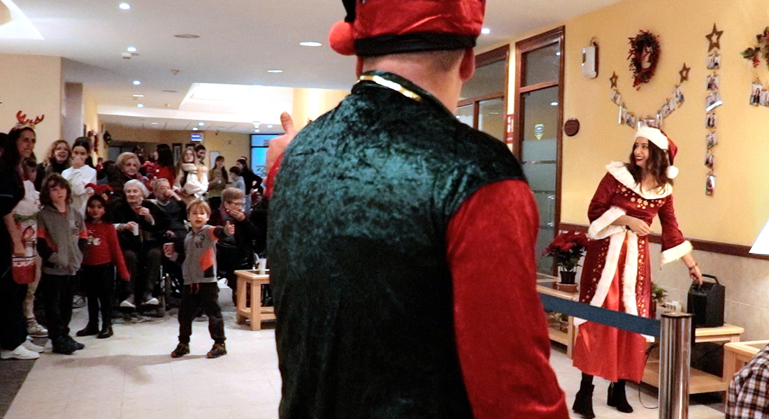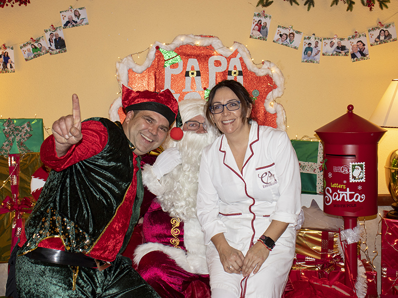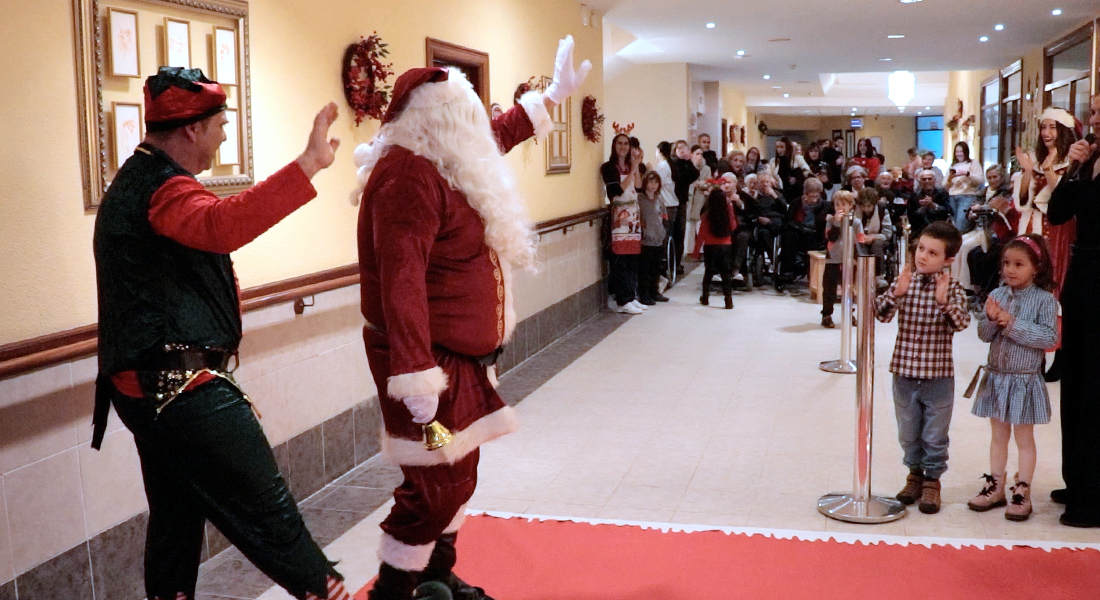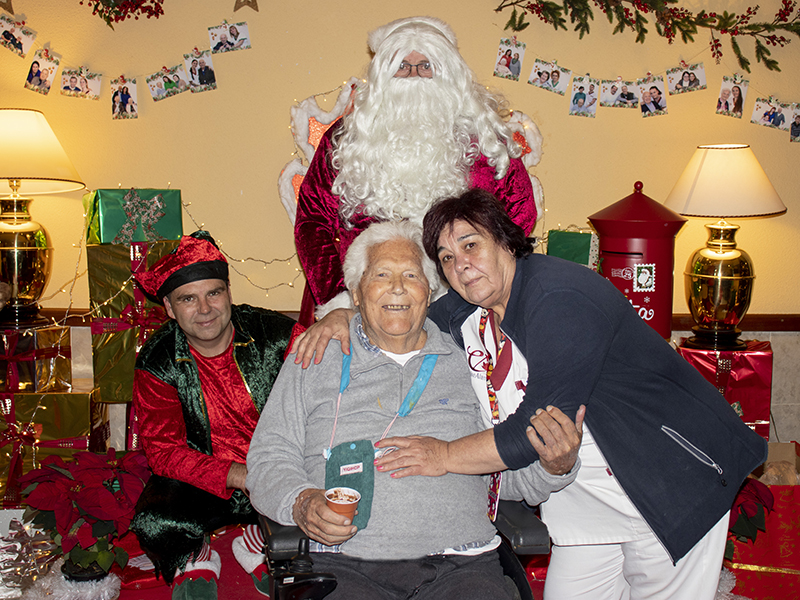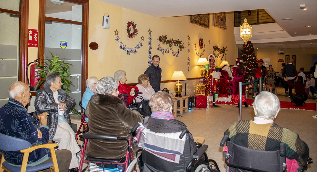 Papá Noel hizo su entrada acompañado de su duende ayudante, despertando sonrisas, risas y mucha ilusión, especialmente entre los más pequeños. Residentes, niños y familiares fueron pasando para inmortalizar el momento y llevarse un bonito recuerdo.