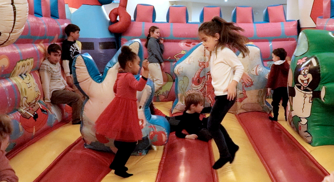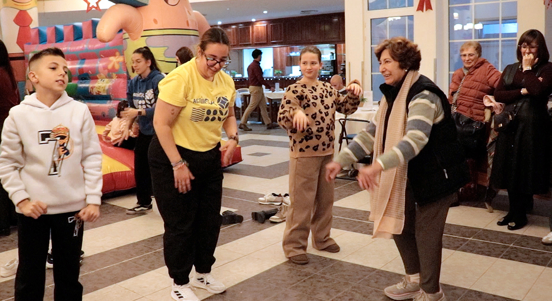 De forma paralela, en el comedor se preparó un espacio dedicado a los niños. La empresa ActivaSur instaló un castillo hinchable donde los más pequeños disfrutaron saltando y jugando. Además, hubo pintacaras, música y baile, creando un ambiente muy animado.