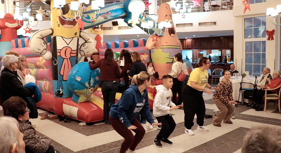 Los residentes disfrutaron especialmente viendo a los niños pasarlo tan bien, compartiendo una tarde llena de vida, sonrisas y espíritu navideño.