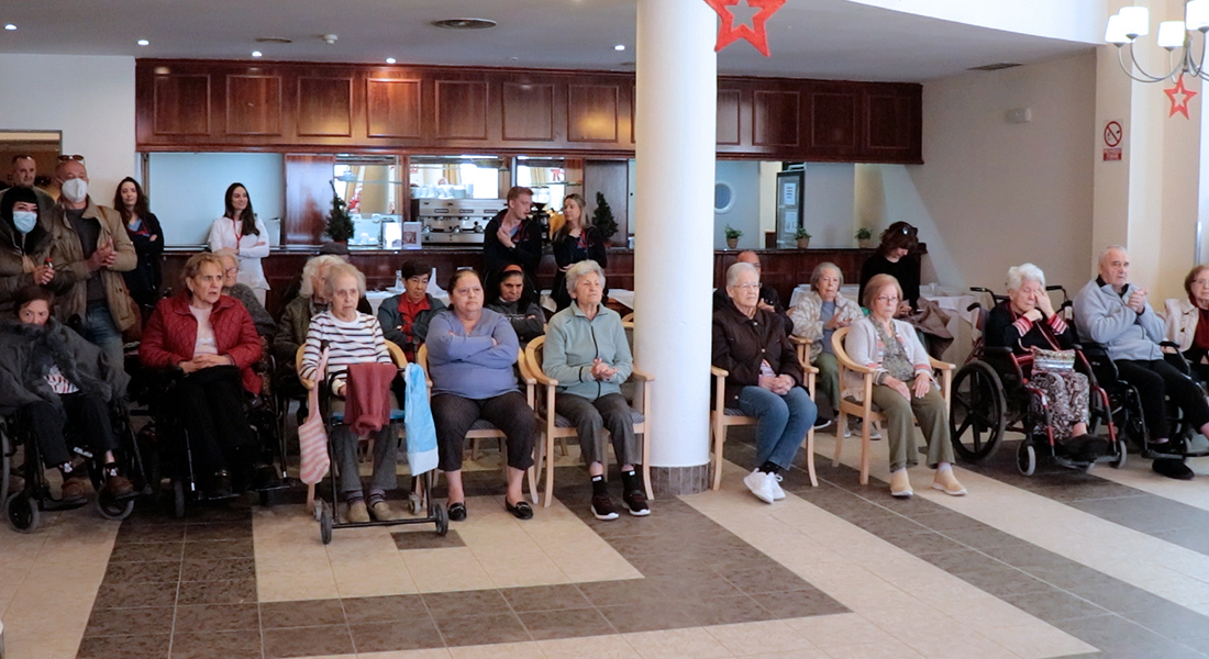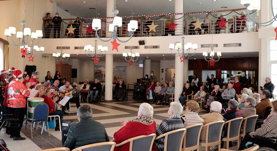 Como es tradición, no faltó el esperado popurrí de villancicos clásicos, y para poner el broche final a la actuación, este año sorprendieron cantando y coreografiando el conocido villancico de Niña Pastori, «Entre zambombas, palillos y panderos». Residentes y coro se animaron a bailarlo juntos, dando lugar a un final muy divertido y lleno de buen ambiente.