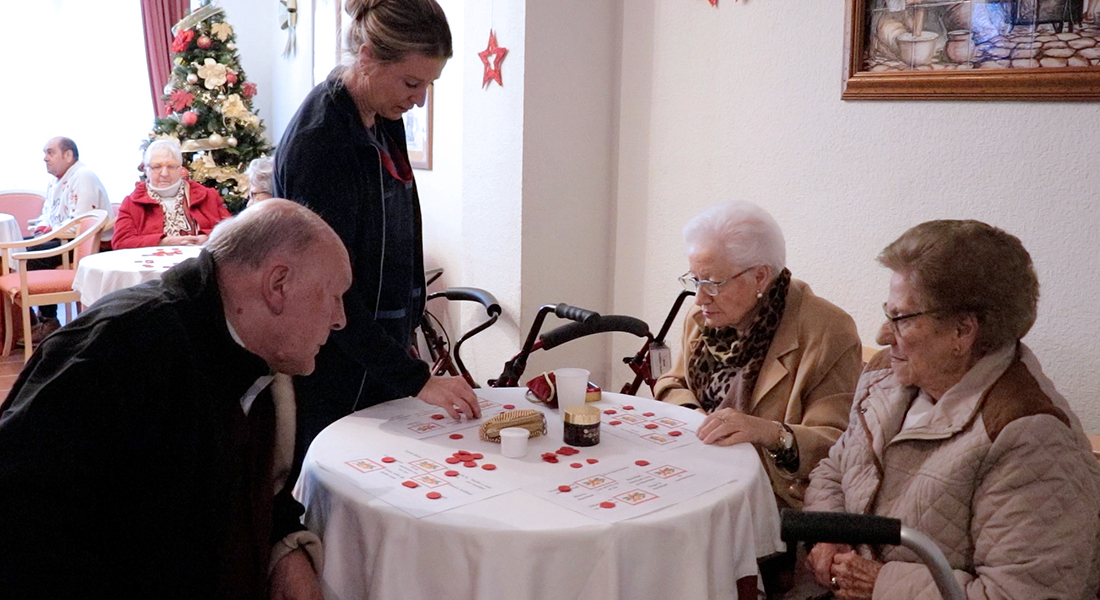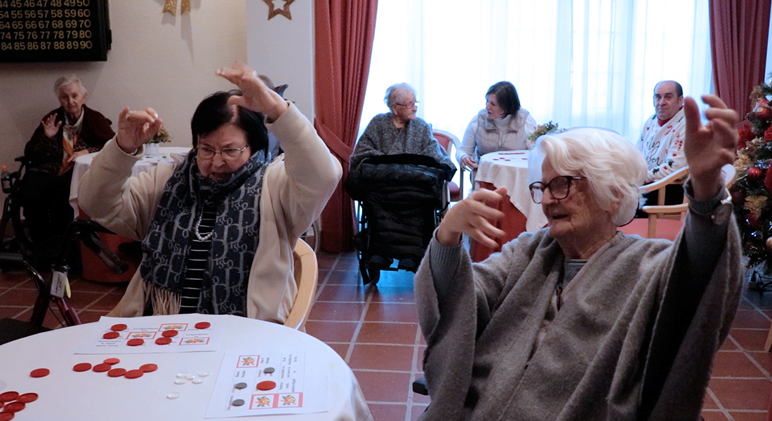 Como cada año, el bingo musical con temática navideña volvió a llenar la residencia de música, risas y participación. Los villancicos, muy conocidos por todos los residentes, fueron marcando el ritmo del juego, desde clásicos como El Tamborilero de Raphael hasta La Virgen Gitana del grupo Raya Real. A nuestros residentes no se les escapa ninguno, aunque en el bingo, además de saber la canción, hay que tener suerte y ser el primero en cantar línea o bingo.
