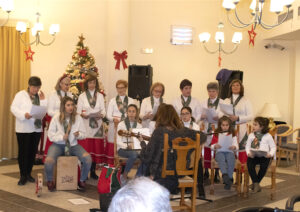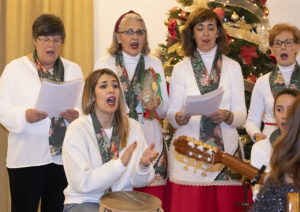 Desde Pulianas recibimos la visita del Coro de San José. Es un coro muy numeroso y sus componentes son de todas las edades. Con sus bonitas voces, nos cantaron villancicos típicos navideños, acompañados con la guitarra, la pandereta, los cascabeles y la zambomba.