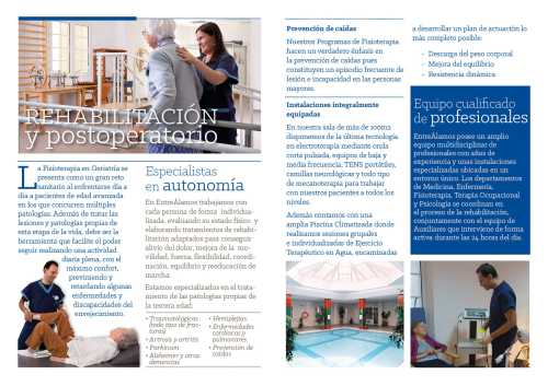 Entreálamos posee un amplio equipo multidisciplinar de profesionales con años de experiencia y unas instalaciones especializadas ubicadas en un entorno único. Los departamentos de Medicina, Enfermería, Fisioterapia, Terapia Ocupacional y Psicología se coordinan en el proceso de la rehabilitación, conjuntamente con el Equipo de Auxiliares que interviene de forma activa durante las 24 horas del día.